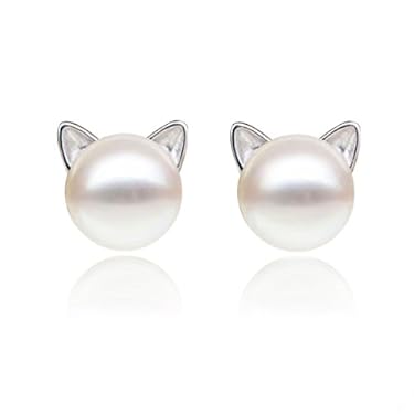 S.Leaf Cat Ear Stud Earrings Freshwater Cultured Pearl Stud Earrings Sterling Silver Ear Studs