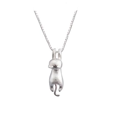 S.Leaf S925 Sterling Silver Cat Necklace Matte Silver Cat Pendant Collarbone Necklace