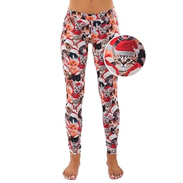 Tipsy Elves Women’s Cat Christmas Leggings – Cute Kitten Ugly Christmas Sweater Party Tights For Girls