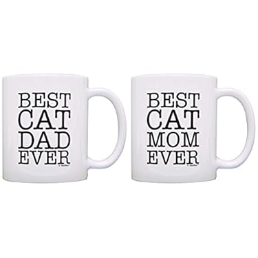 • Cat Lover Gift Best Dog Mom Dad Ever Cat Owner Gift Bundle 2 Pack Gift Coffee Mugs Tea Cups White
