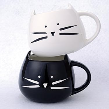 • 2 Pack,Ilyever Funny Cute Little Cat Coffee Tea Milk Ceramic Gift Mug Cup,white+black
