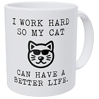 • Aviento Funny Coffee Mug I Work Hard So My Cat Can Have A Better Life 11 Ounces 490 Grams Ultra White AAA
