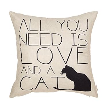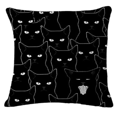 Lyn Cotton Linen Square Throw Pillow Case Decorative Cushion Cover Pillowcase for Sofa 18 “X 18 ” Black and white cat