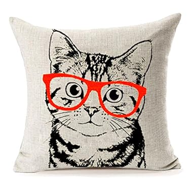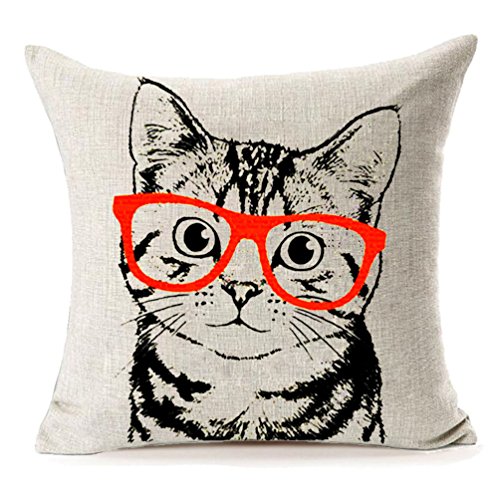 Home Decor Cotton Linen Pillow Covers 18×18,Baroncover Cute Cat Wearing Red Glasses Throw Pillow Case Cushion Cover for Sofa