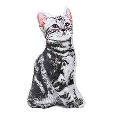 Cat Shaped Pillow – Grey Tiger Stripe 3-D Stuffed Cushion