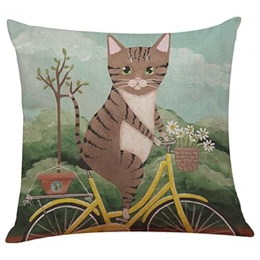 Challyhope Vivid Cute Cat Riding Bikes Sofa Bed Home Decoration Festival Throw Pillow Case Cushion Cover