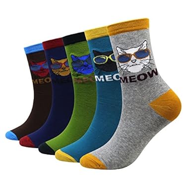 Wish Island Men’s 5 Packs Fun Crazy Animal Cotton Casual Crew Socks