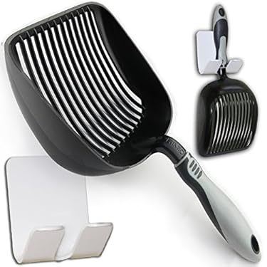 Sifter with Deep Shovel – Designed by Cat Owners – Non Stick Plated, Solid Aluminum. “Perfect Scooper” with Holder. Super Solid Handle. By iPrimio. Patented. Black