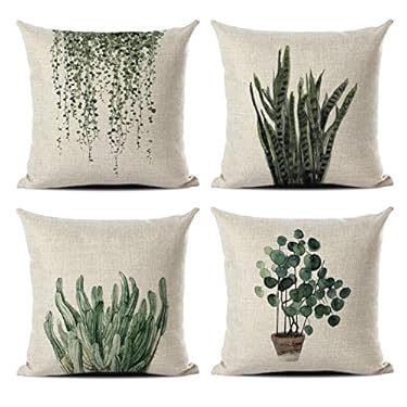 Set of 4 Green Plant Throw Pillow Covers Decorative Cotton Line Outdoor Cushion Cover Sofa Home Pillow Covers 18×18