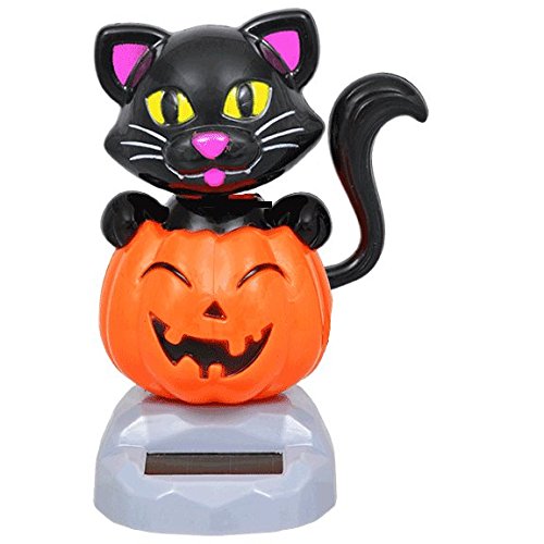 Plastic Solar Powered Dancing Halloween Cats with Pumpkins, 4″