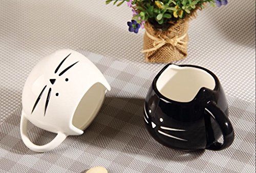 2 Pack,Ilyever Funny Cute Little Cat Coffee Tea Milk Ceramic Gift Mug Cup,white+black