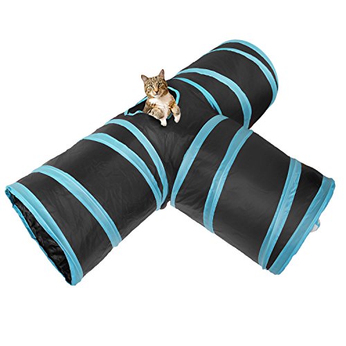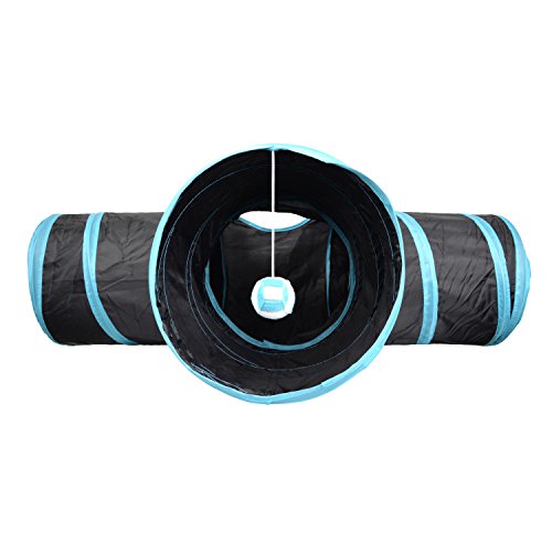3 Way Cat Tunnel, Creaker Collapsible Pet Toy Tunnel with Ball for Cat, Puppy, Kitty, Kitten, Rabbit