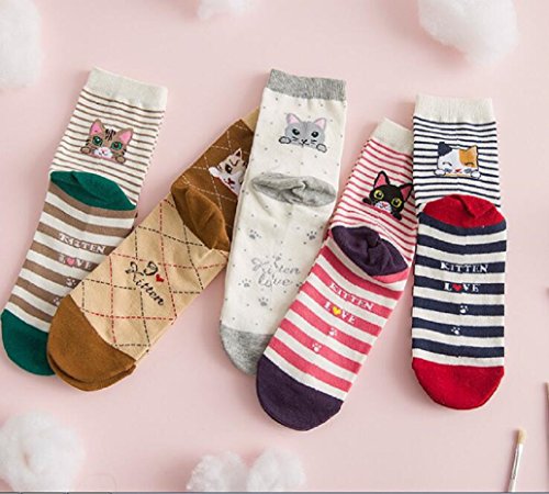 5 Pairs Women’s Fun Socks Cute Cat Animals Funny Funky Novelty Cotton Gift