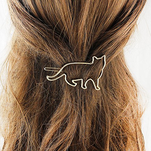 Feelontop New Design Simple Hair Jewelry Gold Silver Plated Metal Cat Shape Hair Clips for Girls with Jewelry Pouch