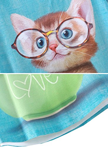 Futurino Women’s Lovely Cup Cat in Teacup Print Short Sleeve T shirt Tops