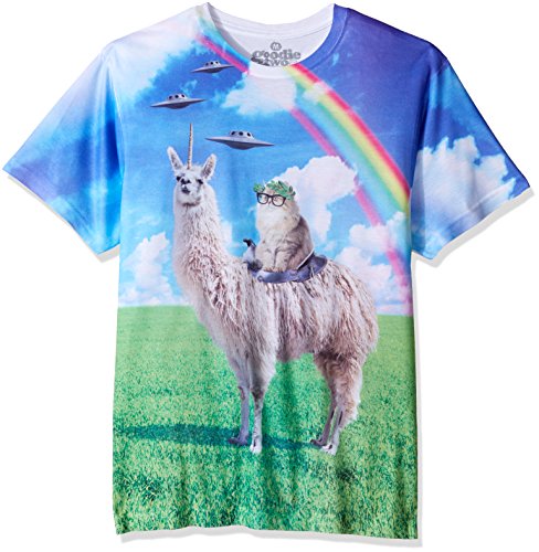 Goodie Two Sleeves Men’s Humor Cat Rides Llamacorn Adult T-Shirt