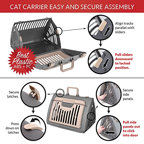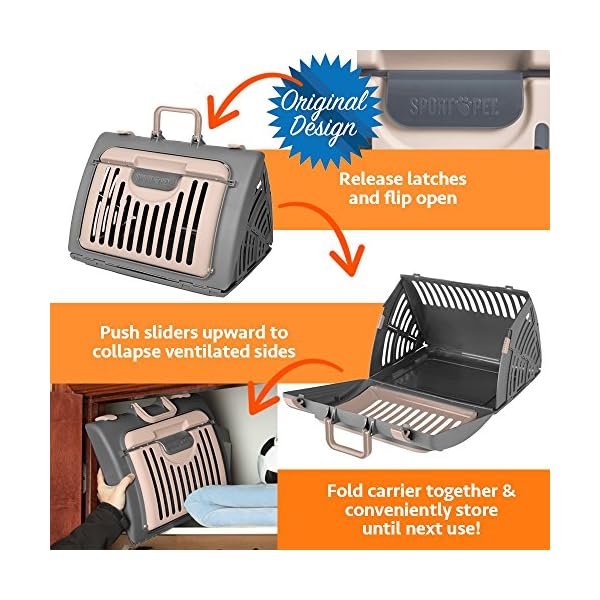 SportPet Designs Foldable Travel Cat Carrier – Front Door Plastic Collapsible Carrier Collection