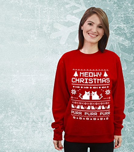 Tstars Meeowee Christmas Ugly Sweater – Cute Xmas Party Women Sweatshirt with Xmas Prop