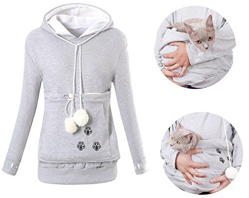 VOGRYE Womens Hoodies Pet Holder Cat Dog Kangaroo Pouch Carriers Pullover Sweatshirts Hoodies (7 Days delivery or refund)